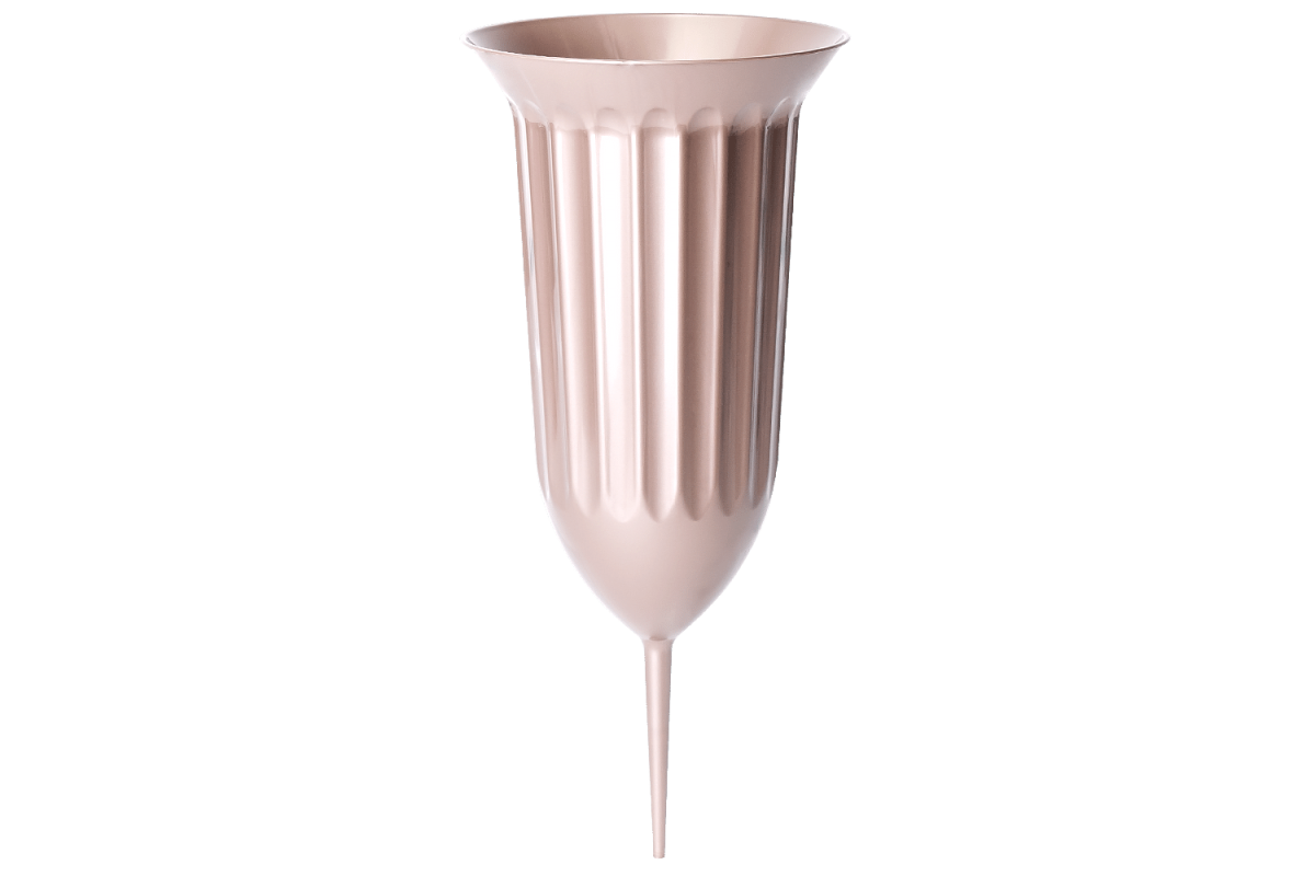 The classic “Flora” vase with a wide stand is practical and durable. The height of the product is 29-51 cm, diameter - 16-28 cm. This model of flowerpots is designed specifically for the demonstration of high cut flowers (roses, gerberas, carnations, chrysanthemums), ready-made bouquets. It can be used both in flower shops, and on street sale trays. The "Flora" flowerpot with pin is a convenient and sturdy flowerpot. The lower part is equipped with a pin, thanks to which it is easy to place the vase in the ground. Suitable both for the garden and for a cemetery. It is available in several shades. Moreover, the vase for a long time retains the original color, thanks to polypropylene, which is resistant to sunlight and temperature extremes.