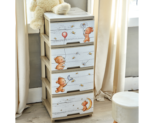 Комод с декором на 4 ящика (крем., Медведи)