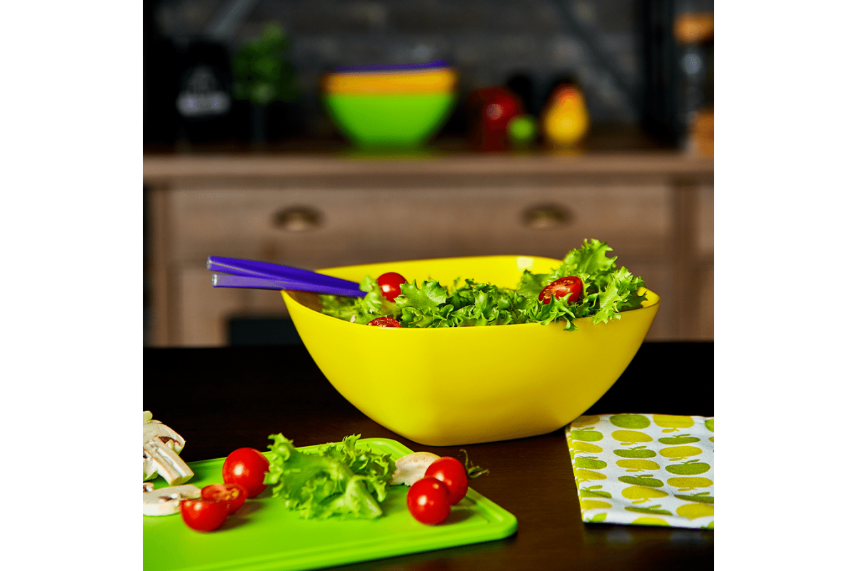 Салатница - это глубокая емкость трапециевидной формы, которая используется для подачи закусок и вторых блюд. Серия салатниц изготавливается в 3 типоразмерах:- 12 х 12 х 5,5 см;- 18 х 18 х 7,5 см;- 24 х 24 х 9,5 см.Изделие выпускается в различных цветах. Салатницы изготовлены из полипропилена - материала, который обладает рядом преимуществ:- не содержит токсинов;- не вступает в контакт с кислотами и щелочами;- не впитывает запахи;- выдерживает температуру до 120ºС.Низкая цена - еще один плюс изделий из полипропилена. Использование салатницы для разогрева блюд в микроволновой печи допустимо.